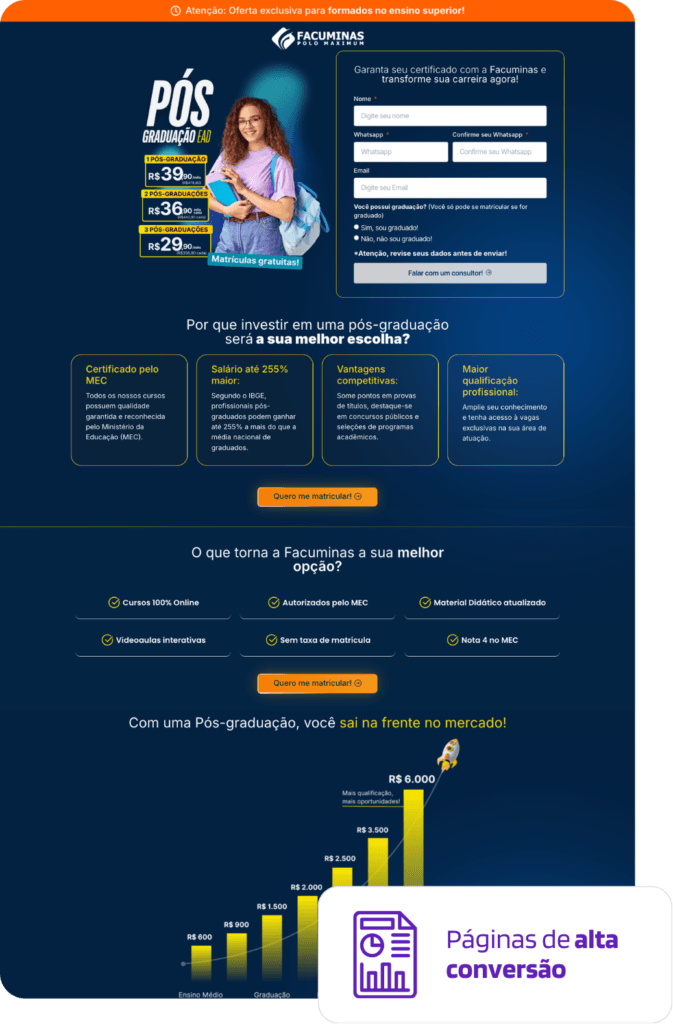 Criamos páginas que combinam design profissional, experiência do usuário e alta performance para garantir que cada clique gere resultados.